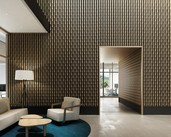 La nouvelle gamme LINEA 3D est une solution architecturale de panneaux composés de lames en bois massif à claire-voie pour l’habillage intérieur des murs et plafonds suspendus. Créée avec les designers-menuisiers de Woodlabo, elle offre une finition « haute couture », grâce à un travail du bois en trois dimensions de grande précision, qui joue sur les volumes, le rythme, la lumière, apportant un aspect graphique inédit.
